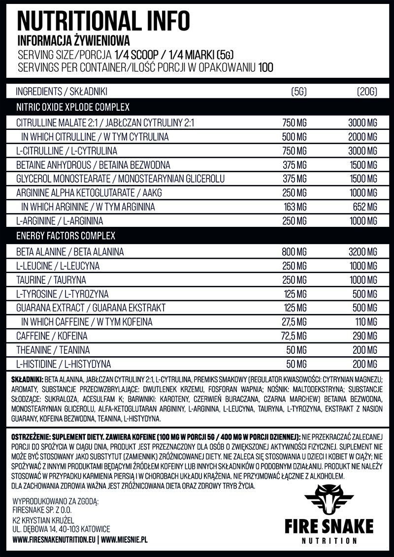 FireSnake Black Mamba to profesjonalna, pompująca przedtreningówka zalecana osobom aktywnym fizycznie w okresach najbardziej wyczerpujących, przedłużających się treningów siłowych i wytrzymałościowych.